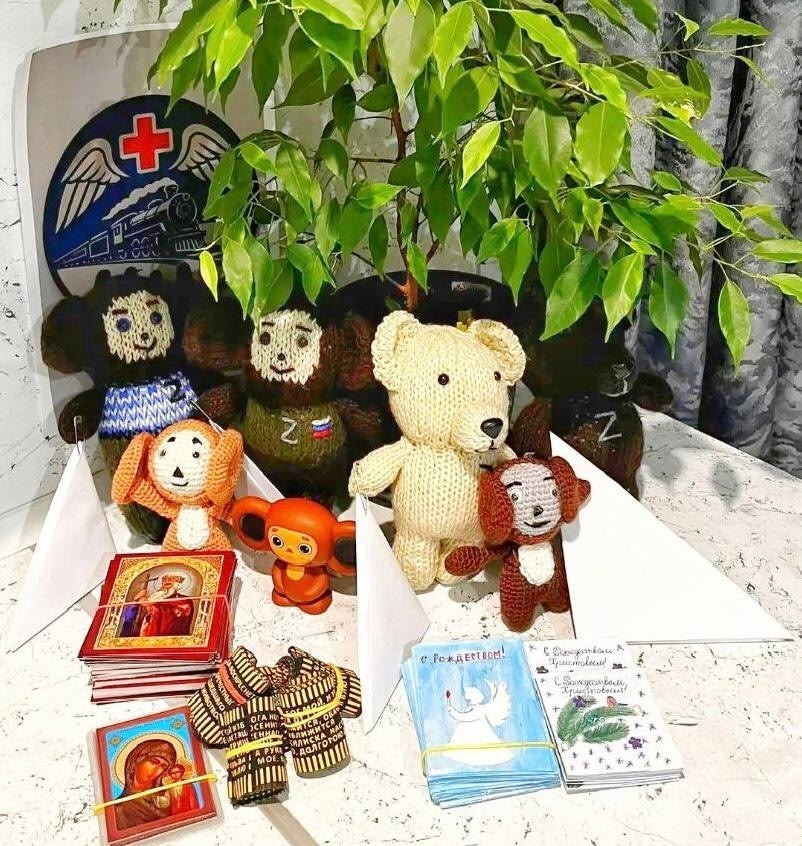 Несколько раз в месяц наш гуманитарный проект встречает на ж/д вокзале транзитный санитарный поезд с тяжело ранеными бойцами СВО, которые едут на лечение в госпитали нашей страны. На перроне мы угощаем бойцов домашней выпечкой (пироги, блины, запеканки, горячие бутерброды), домашними морсами, компотами. Каждому бойцу вручаем индивидуальный набор, внутри которого: кофе, чай, зубная щётка, бритвенный станок, бутылочка напитка, влажные салфетки, мёд/варенье, контейнер с шоколадным батончиком, зефиром, сухофруктами, печеньем, пряником, халвой, пастилой, конфетами, письма детей, вязанная чебурашка/медведь.